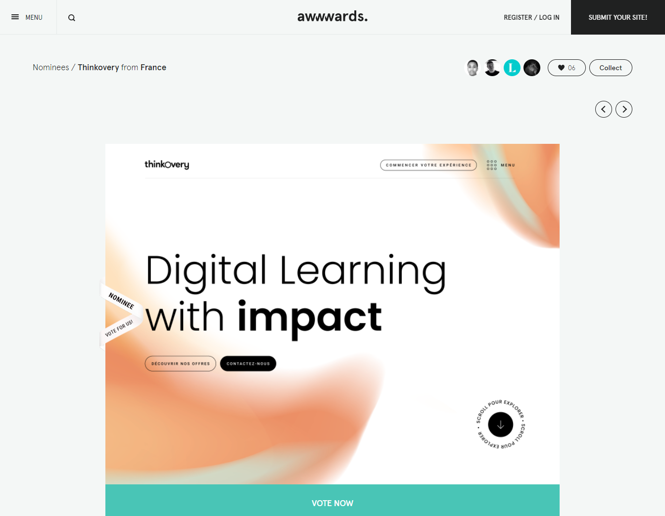 Réalisation du site Thinkovery, en collaboration avec l’agence Limpide.